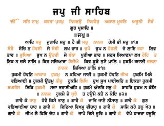 HukmI auqmu nIcu hukim iliK duK suK pweIAih Hukmee utam neech hukam likh dukh sukh paa-ee-ah. Japji Sahib ik-oNkaar sat naam kartaa purakh nirbha-o nirvair akaal moorat ajoonee saibhaN gur parsaad. Embed PDF READ DOWNLOAD Japji Sahib - English.